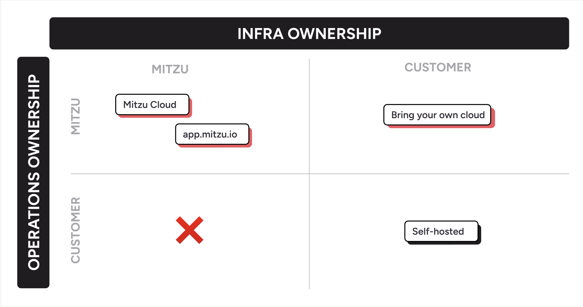 There’s one combination we don’t offer: Mitzu infrastructure with customer-run operations.