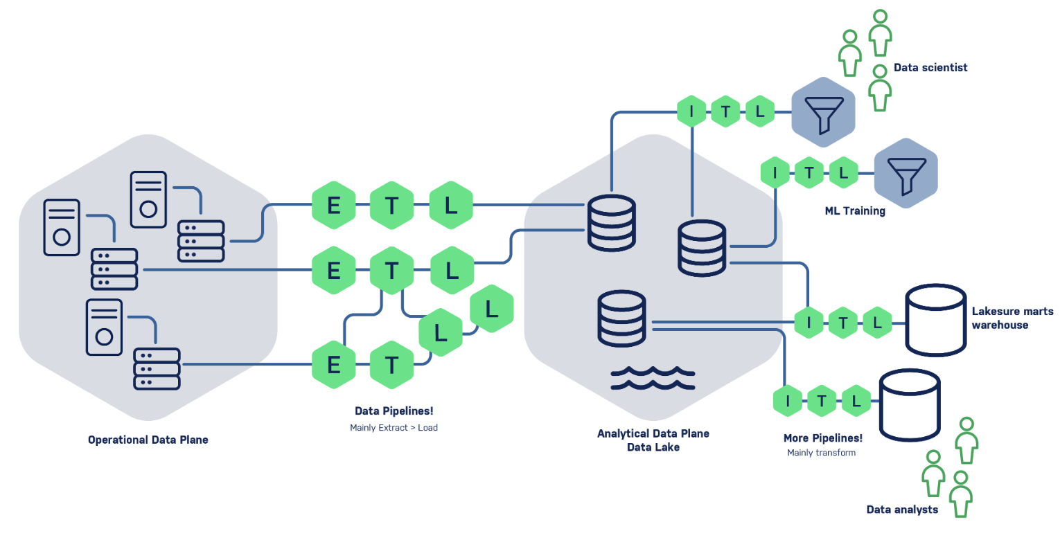 | Data Preparation | Domain-specific pipelines forlocal use cases | Central orchestration of ingestion, transformation, cataloging |