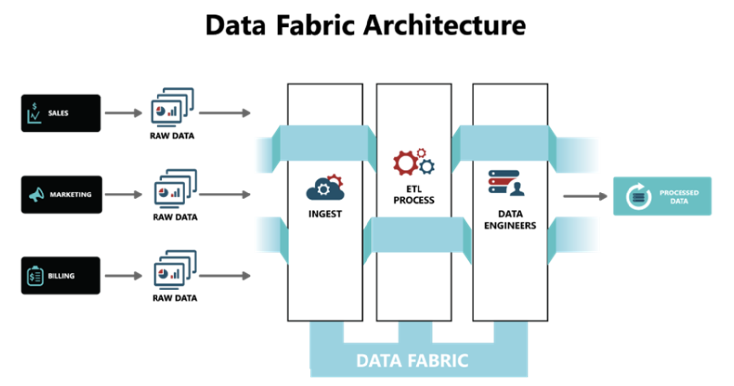 Example: A global bank using Denodo abstracts on-prem databases, cloud data lakes, and streaming systems. Analysts query the fabric, which intelligently routes, optimizes, and secures data access, delivering rapid insights without data replication.