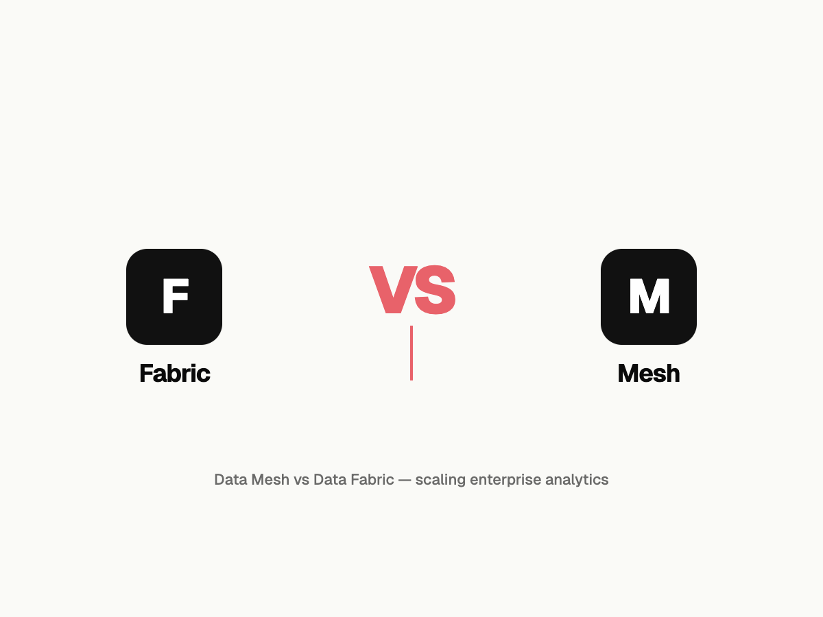 Both can work. Product analytics benefits when event and revenue data are discoverable, trusted, and queryable in the warehouse—whether domains publish data products (mesh) or fabric tooling stitches lineage and access (fabric).