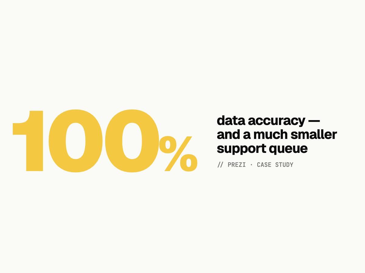 Mitzu helped Prezi to improve data accuracy, speed, and self-service while cutting costs significantly. It helped non-technical teams, reduced support tickets, and sped up product iteration.