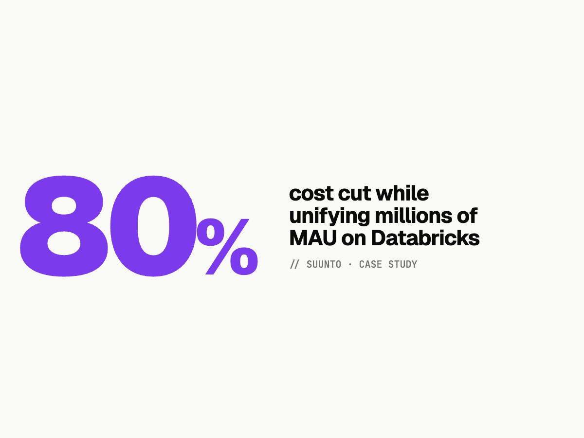 Since implementing Mitzu, Suunto has achieved significant improvements in both efficiency and insight. Analytics costs were dramatically reduced while maintaining or exceeding previous capabilities. Data from multiple sources including app telemetry, devices, and SAP can now be integrated into Databricks and Mitzu connects directly to Databricks.
