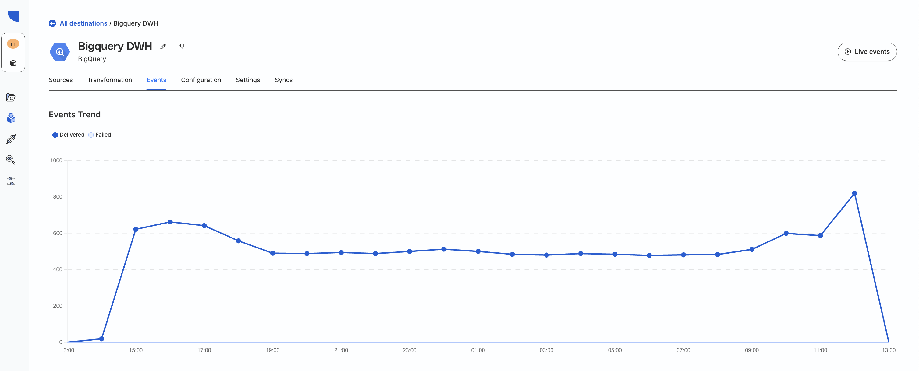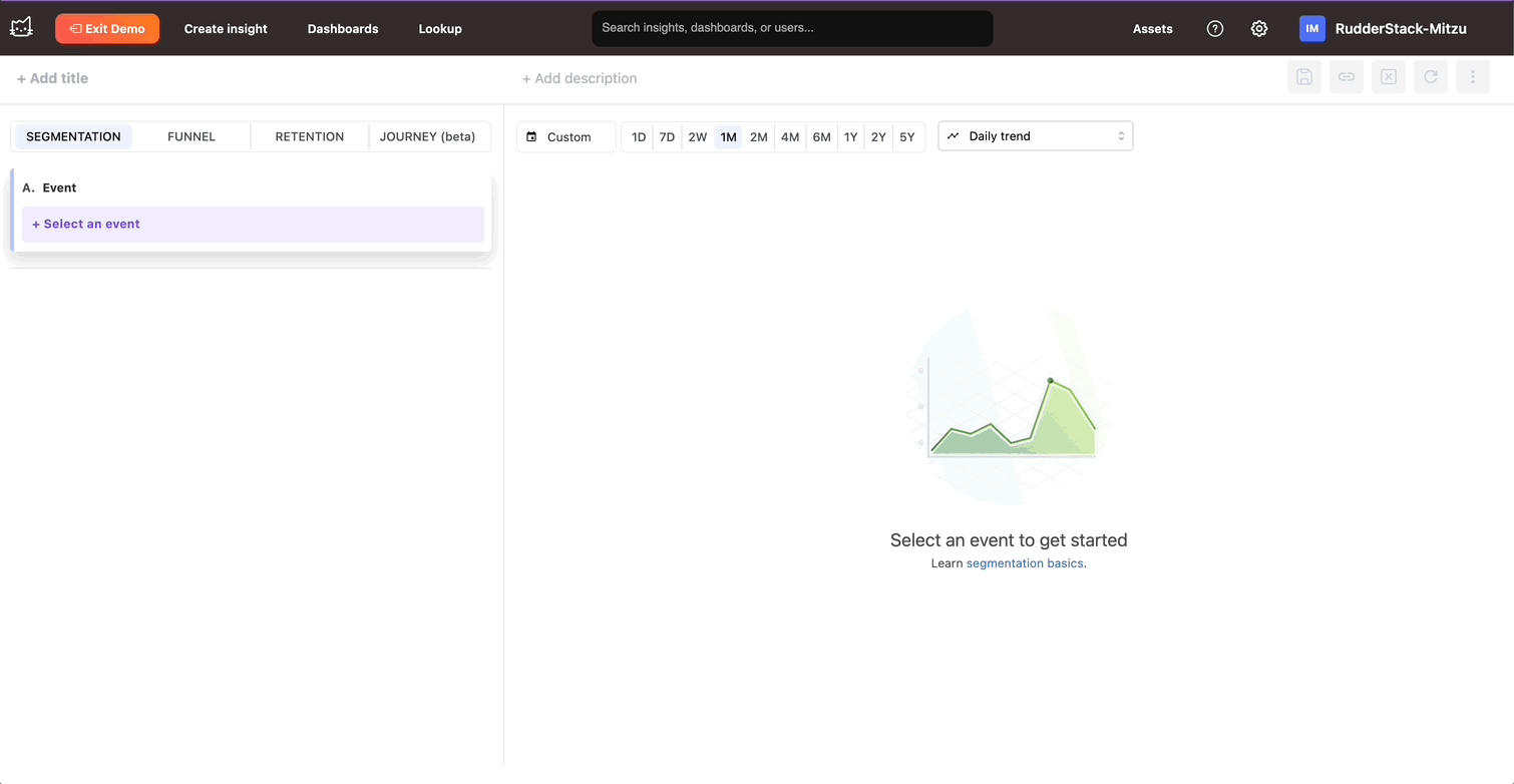 If your configuration is correct, you should be able to see a similar chart on the Events Trend tab in RudderStack.