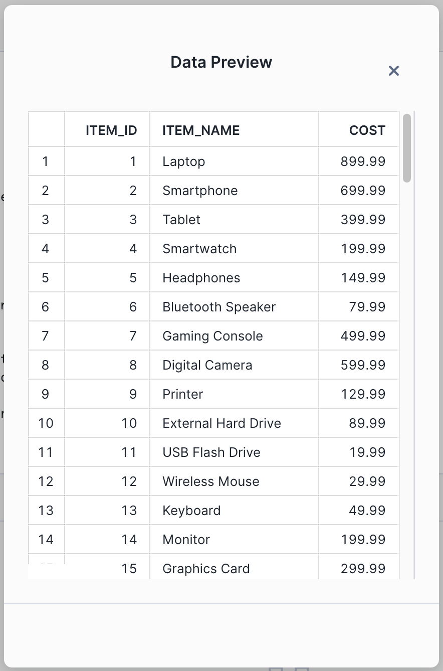 Notice that the table has country_code and item_id columns as foreign keys.In the fact table, we have two event types: