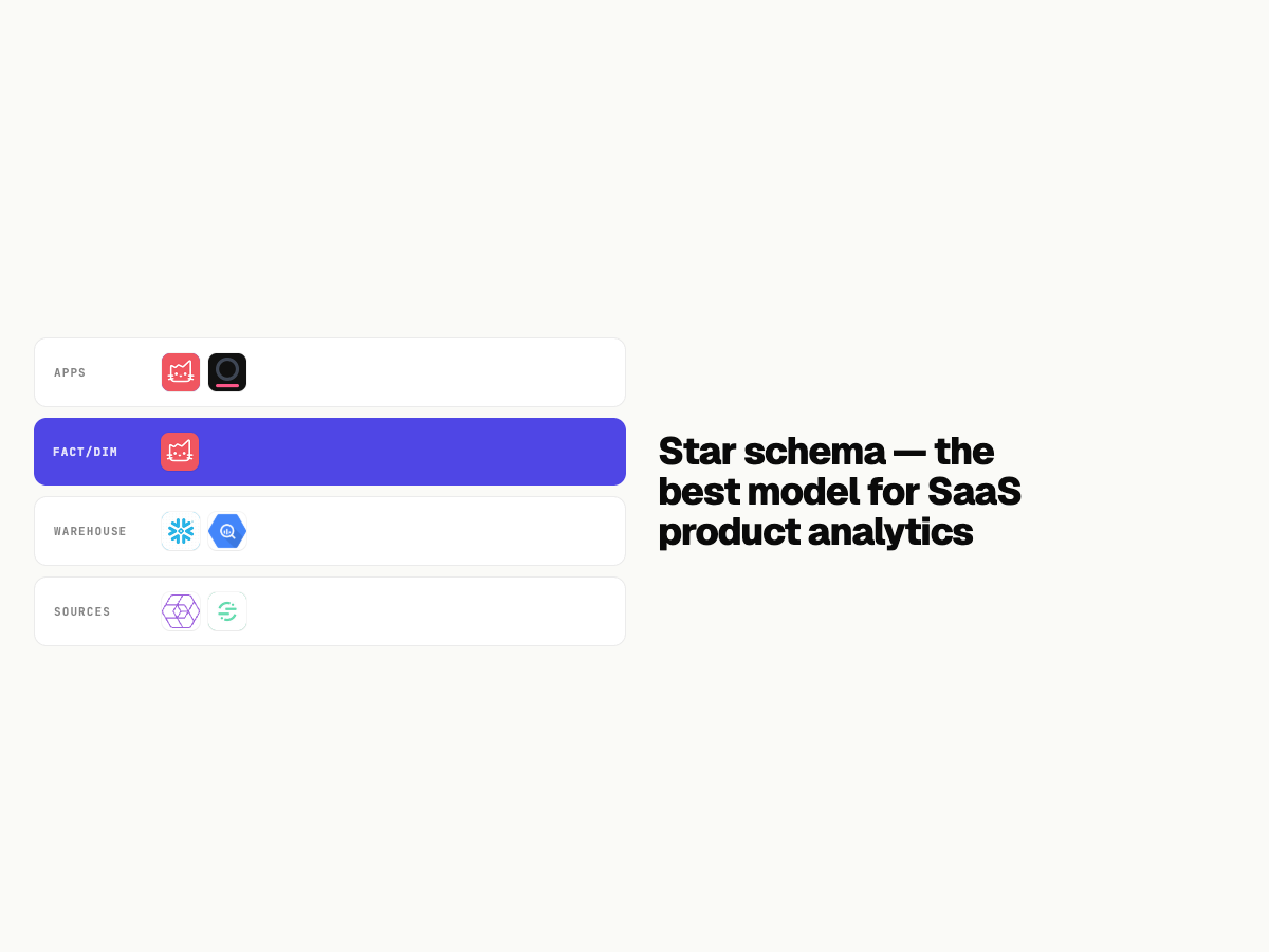 The star schema reigns supreme as the best data model for SaaS product analytics for several reasons: