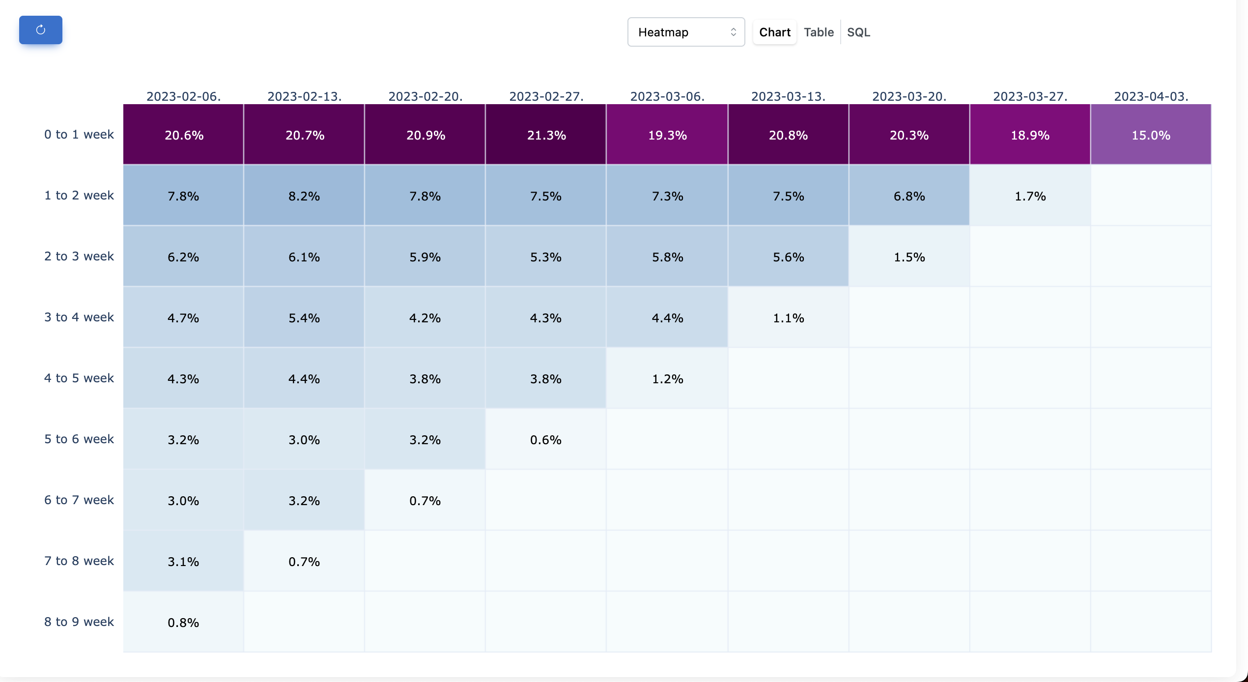 WHERE retention.cohort_week = DATE('2023-01-02')